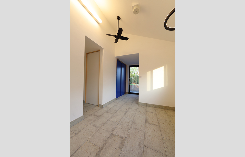 外壁、エントランス、打合せスペース、スタジオには地元で生産・流通している素材を使用。床には大谷石、壁・天井には漆喰、外壁の一部には木材(杉)とそれぞれの部位に栃木県を代表する素材を施し、地域への貢献と活性の想いを込めている。